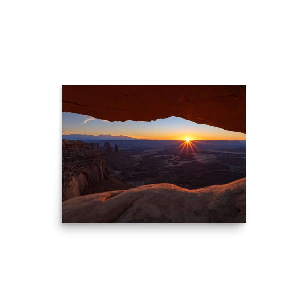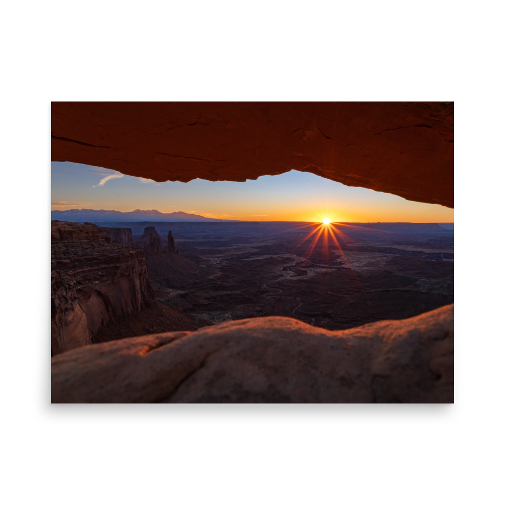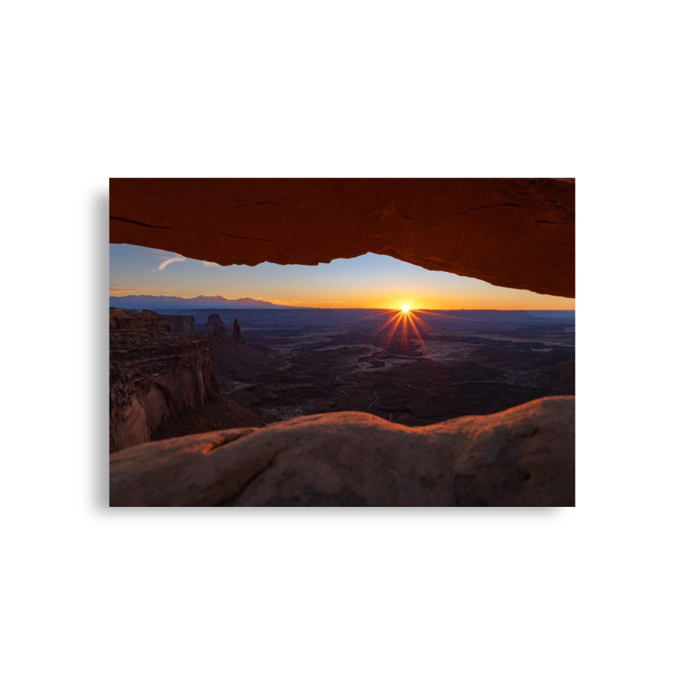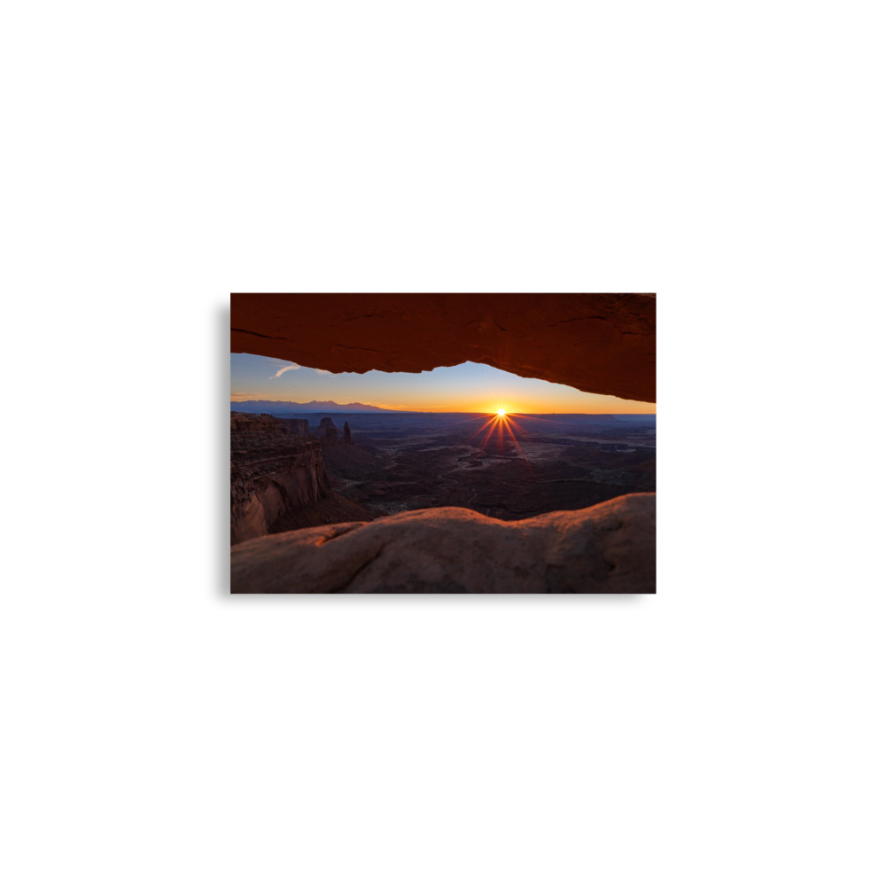 The sun rising above the horizon in Canyonlands National Park, Utah.