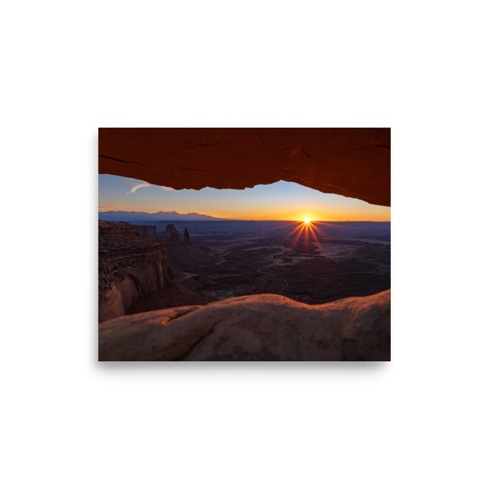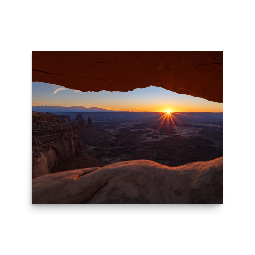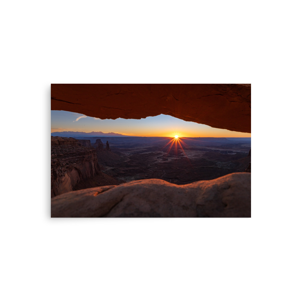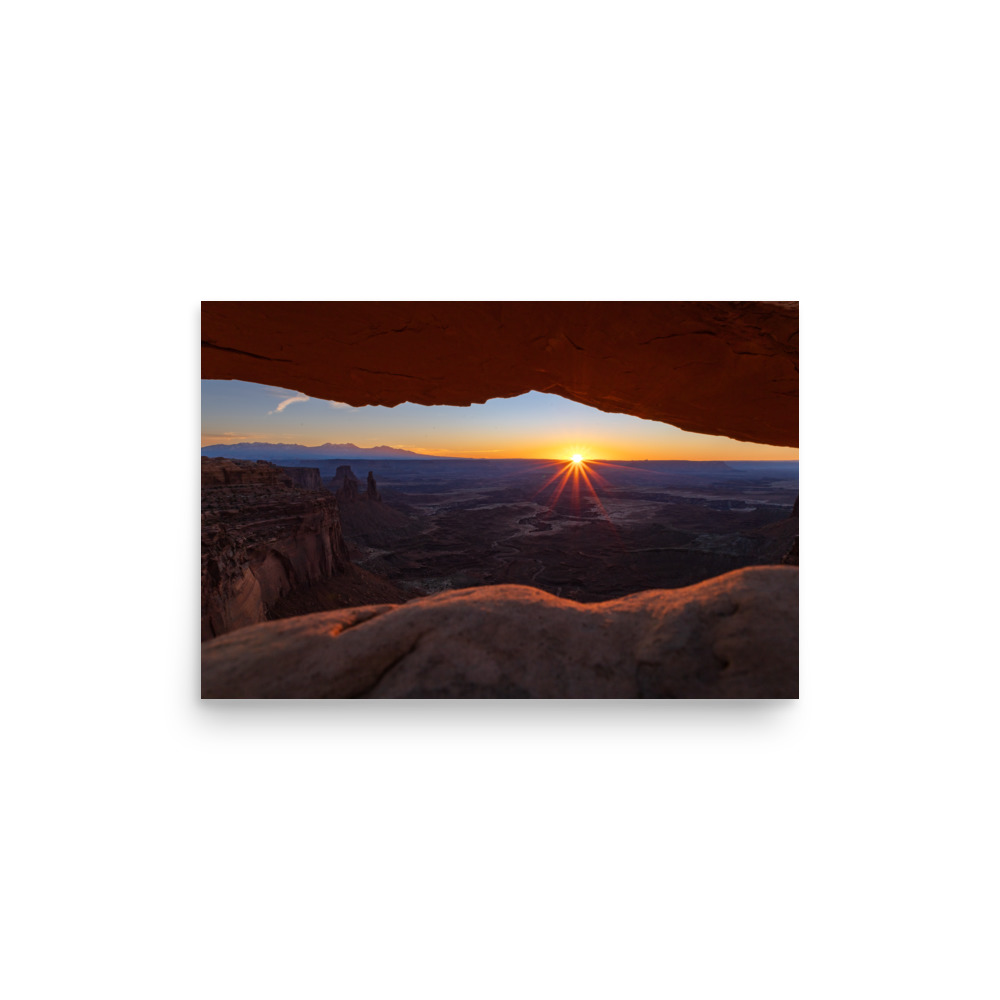 The sun rising above the horizon in Canyonlands National Park, Utah.